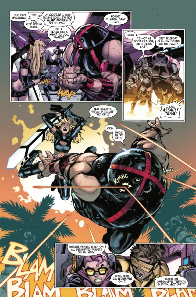 Quizá el gran problema de este comic es que estando bien, no me ha generado un WHOA!!!! En este punto, entiendo que yo mismo lo comparo con el anterior relanzamiento, que fue la revolucionaria Dinastía de X. Y esta comparación es muy injusta, aunque sea lógico que la comparación se haga con lo anterior. Esta grapa de X-Men creo que está hecha con oficio por autores que transmiten que les importan los personajes y que tienen una historia que contar con ellos, pero no es el comic rompedor que fue el inicio de Jonathan Hickman, empezando porque creo que MacKay en realidad NO BUSCA SER ESO. Creo que desde que empeazo a trabajar en Marvel, MacKay, simplemente quiere contar buenas historias que se sientan correctas con la esencia de los personajes. Me encanta MacKay en Doctor Extraño y Caballero Luna, y uno de los motivos es precisamente que no intenta ser rompedor o trasgresor, simplemente contar buenas historias dentro del Universo Marvel. Y me parece curioso que lo que le servía de sobra para estos personajes y comics, de alguna manera se quiera decir como ya estoy leyendo en redes sociales que no es suficiente para los X-Men.