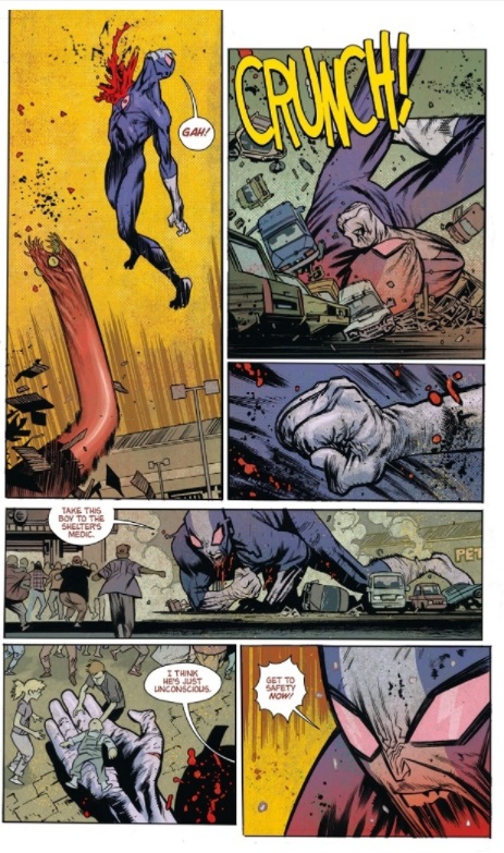 Junto a Harren, la paleta de color elegida por Dave Stewart refuerza el elemento freak y loquísimo de la historia, creando unos contrastes muy chulos entre los momentos tranquilos y las peleas más grandes que la vida que tenemos en este comic. Como digo, sólo por el dibujo merece sin duda comprar el tomo recién editado por ECC Ediciones.