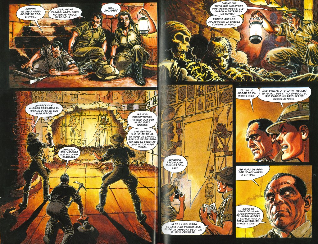 Muchos de los datos contenidos en este primer número son conocidos, pero la gracia está en ver cómo Waid los sitúa cronológicamente en esta Nueva Historia del Universo DC. Un primer número que empieza en la creación misma del multiverso y que llega hasta el final de la Golden Age tras la 2ª Guerra Mundial y el comienzo de la Silver con una nueva generación de héroes. Ver a la familia de Sandman de Neil Gaiman, los Endless (¿en castellano eran los Eternos, verdad?), formando parte del panteón de series sobrenaturales del universo DC es una pasada. Como también me flipa ver a Arión o el hundimiento de Atlantis. Todo, en realidad. Waid plantea una narración ágil que ayuda a que toda la información que se incluya pueda leerse y disfrutarse sin que parezca que estamos ante un tocho tipo «listín telefónico».