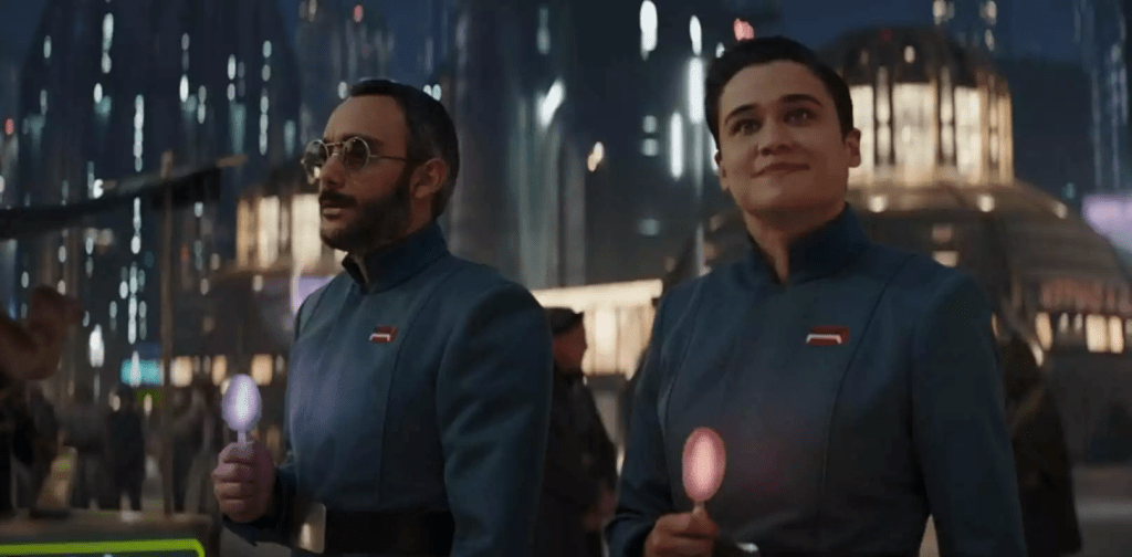 Viendo la temporada en su conjunto, el entretenimiento que nos ha dado The Mandalorian me parece modélico. Dicho esto, Favreau no se ha cortado al plantear experimentos narrativos durante estos ocho episodios, como fue el tercer episodio protagonizado en su mayoría por el Doctor Pershing en Coruscant que ponía el foco en la existencia de espías imperiales dentro de la burocracia de la Nueva República. Este episodio se siente como una isla dentro de la narrativa de la serie centrada en Din Djarin y el viaje de los mandalorianos para reclamar Mandalor como su hogar. Aunque luego siguiéramos viendo las andanzas de la espía Elia Kane en los episodios cinco (evitando que el Coronel Tuttle ayudara a Nevarro) y siete (informando a Gideon de la unión de los mandalorianos), esta trama sumado a la presentación del Consejo en la Sombra imperial se ha creado para que se desarrolle en futuras series de Star Wars. Teniendo en cuenta lo criticada que fue en su momento El libro de Boba Fett por los dos episodios protagonizados por Mando (y Luke, unos episodios brillantes, por cierto), me sorprende la valentía de Favreau al no ir a lo fácil y atreverse a plantar estas semillas para el futuro de la forma en que lo hizo.