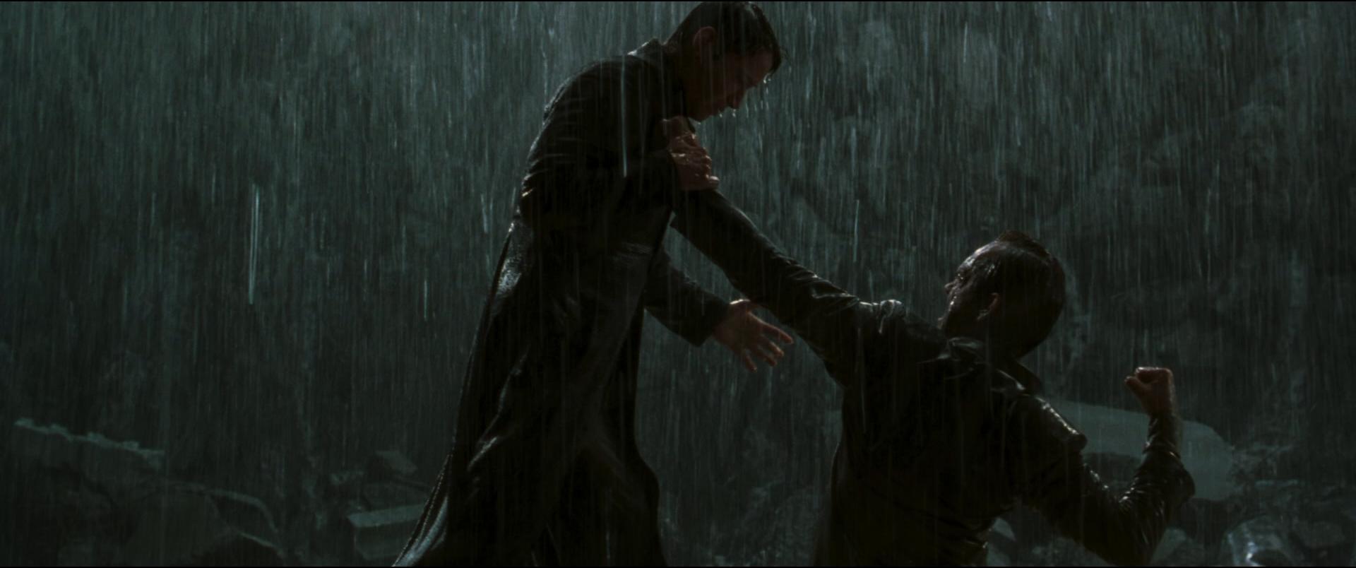 Otro motivo de queja es el desaprovechamiento que hacen de Morfeo o Trinity, aguando toda la importancia que se suponía debían tener en la historia. Por un lado, Literalmente Morfeo no hace nada interesante o relevante en los 129 minutos de metraje, por ejemplo en la pelea en la discoteca de Merovingio son Seraph y Trinity las que se llevan los momentos de gloria. Y por otro, después de toda la murga que nos dieron con el amor verdadero de Neo y Trinity y como era su destino estar juntos, que el final el papel de Trinity es hacerle de taxista a Neo y morir a las puertas del paraíso (no hay metáforas bíblicas, que va…), es un bajonazo que entiendo no debió hacerle demasiada gracias a los fans del personaje que por aquellos años eran un montón.