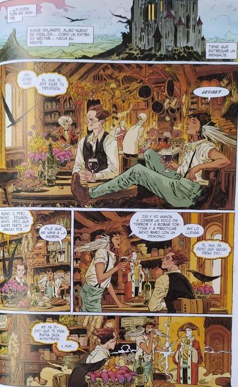 El comic dibujado por Dani es quizá el menos bueno del tomo dentro que me gustó bastante, con varios hallazgos visuales y mucha personalidad. A continuación, el genial Matías Bergara (Coda, junto a Spurrier) nos ofrece su despliegue artístico en un número ambientado en el Infierno con una apuesta con un incierto y original final. Y por último, Marguerite Sauvage dibuja dos números con su habitual calidad. Dentro que es una pena no tener a Evely dibujando todo el comic, creo que los artistas elegidos han aportado un interesante granito de arena en la narración de esta historia fantástica.