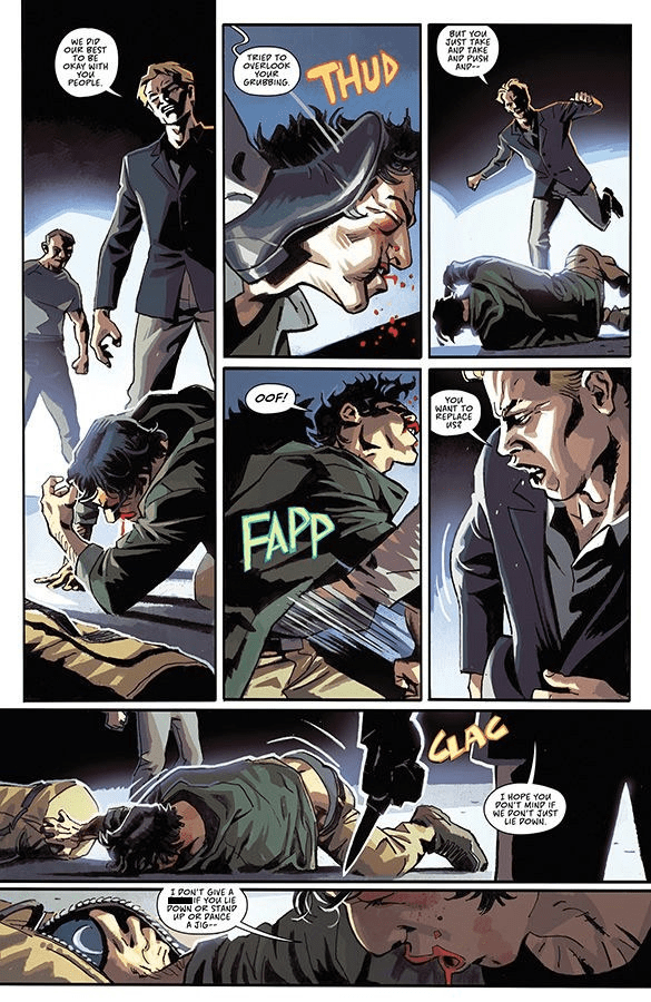 Me gusta mucho el dibujo de Roland Boschi con el color de Moreno Dinisio. Boschi es un colaborador habitual de Remender desde sus tiempos en Marvel, con el que trabajó en las miniseries HAIL HYDRA o WINTER SOLDIER : The bitter march. Ya en Image, Boschi terminó de dibujar la serie The Scumbag, lo que ya resaltaba la capacidad de Boschi para dibujar comics con una fuerte dosis de humor negro.