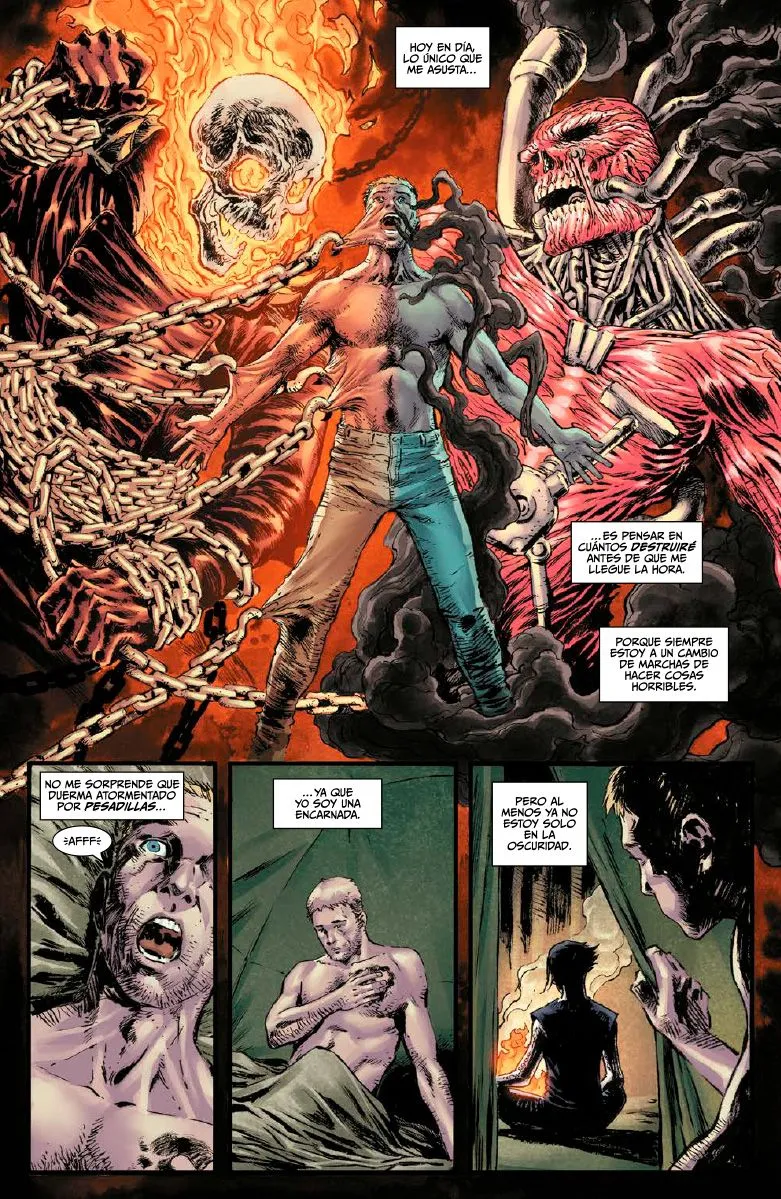 Y la verdad es que leído este arco se agradece que Benjamin Percy sea el guionista de ambas colecciones, dado que ha planteado un arco que encaja con ambos personajes, permitiendo la reunión no sólo de Logan y Johnny Blaze, sino de secundarios de ambas colecciones como el agente de la CIA Jeff Bannister y Talia Warroad, la actual acompañante de Blaze.