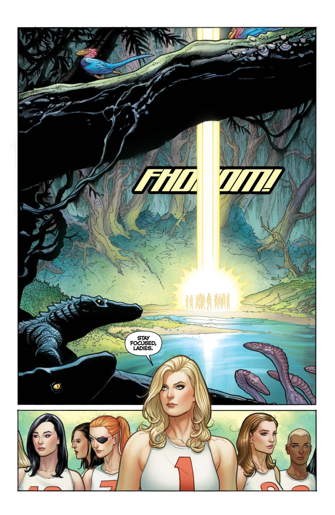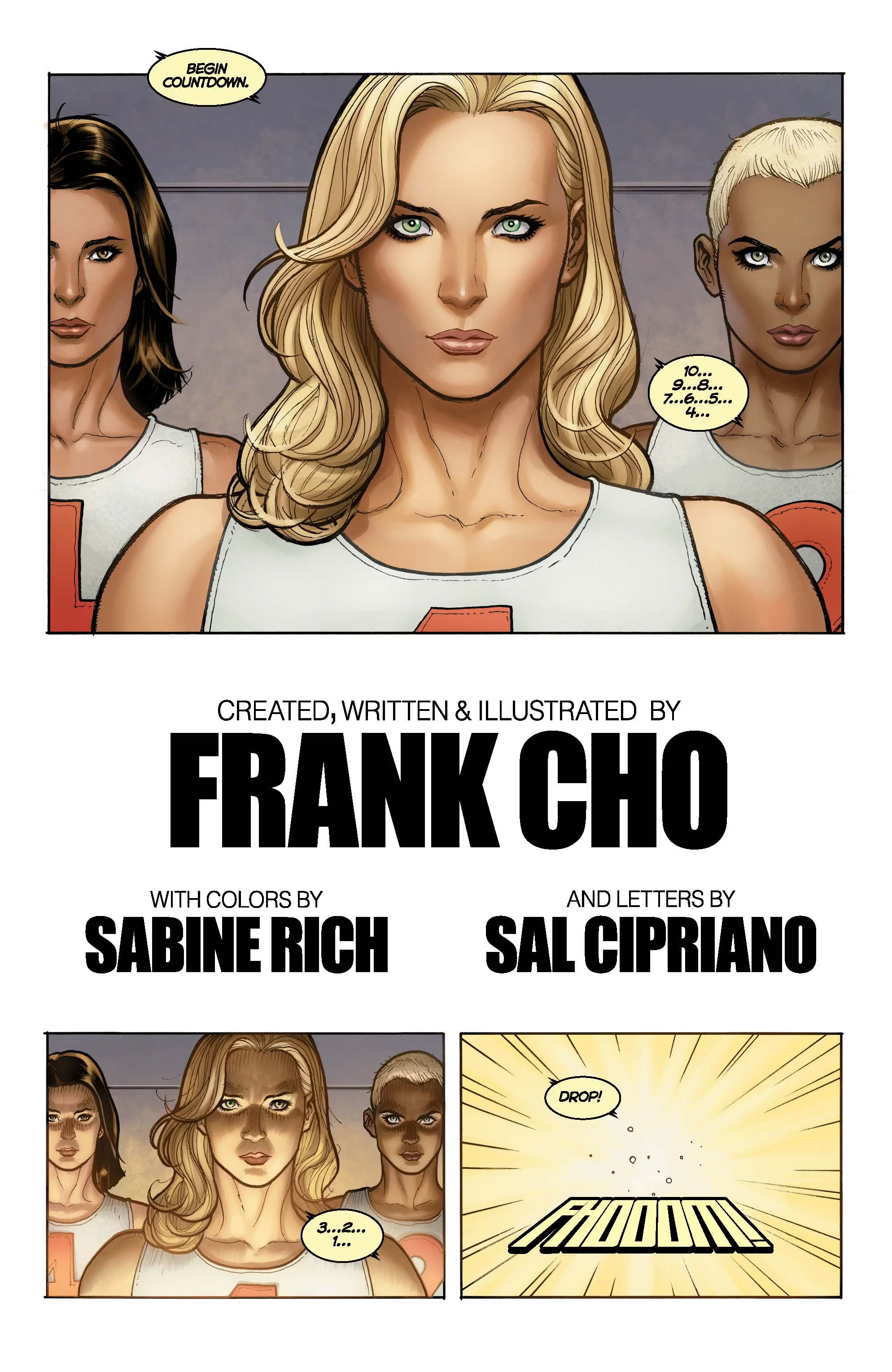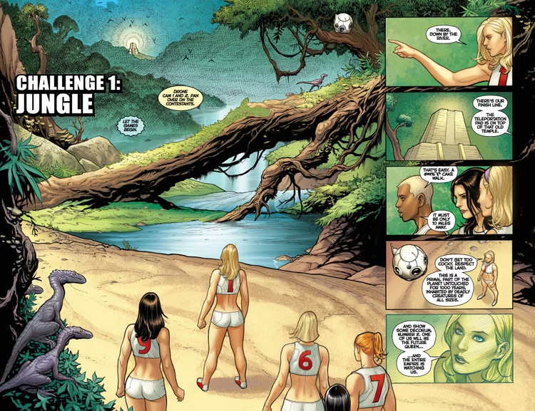 Una vez hecha la aclaración, lo cierto es que tenía muchas ganas de leer este comic, que cuenta con color de Sabine Rich, pero por una cosa u otra nunca llegaba a comprarlo. Sin embargo, comprobar que la edición americana de AWA se encontraba a menos de 10 €uros me pareció un precio demasiado bueno como para dejarlo escapar, comprándolo como autoregalo navideño. Y aunque no debería ser necesario decirlo, Fight girls es un comic de aventuras claramente inspirado en Los juegos del hambre que no tiene nada de erótico. Excepto, claro, si ver mujeres atléticas con una indumentaria similar a las que usan las mujeres que practican atletismo te resulta erótico. Entonces si. Pero para el resto del mundo, este comic es una aventura sin ninguna connotación sexual, con un Cho concentrado en contar la historia de la forma más atractiva posible pero sin imágenes que sexualicen a las mujeres protagonistas. De hecho, ver a estas mujeres en plenitud física realizar pruebas atléticas complejas sobreviviendo a amenazas mortales debería verse como una historia que celebra a la mujer.