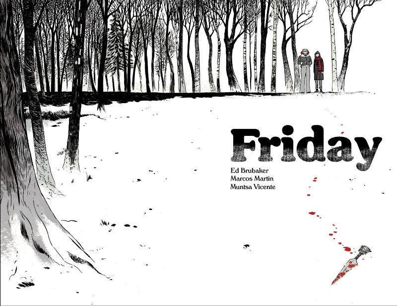Además, Brubaker añade un texto de Marcos Martín sobre su proceso creativo para esta serie: “Llevaba un tiempo queriendo experimentar un poco con mi estilo de dibujo y alejarme de mi zona de confort, mediante el empleo de la técnica del «cross-hatching» (sombrear un área con líneas paralelas estrechamente dibujadas). Cuando Ed me lanzó la idea para Friday con su mezcla de Edward Gorey y Lovecraft ambientada en una ciudad de Nueva Inglaterra a finales de los 60 y principios de los 70, me sorprendió descubrir lo perfecto que era para lo que quería desarrollar. Me llevó a buscar artistas de cómics e ilustradores de libros que siempre me habían gustado pero que nunca había encontrado una manera de incorporar (a su estilo). Artistas como el mencionado Gorey, quien probablemente no solo es la influencia más fuerte en los diseños de los personajes, sino también conceptualmente, en el estado de ánimo visual general y la atmósfera del libro. Y también Tove Jansson, Crepax, Matsumoto o Harry Clarke, entre otros, han sido una referencia constante en mi lucha por encontrar el equilibrio adecuado entre las áreas en blanco y negro fuertes y simples y la línea más intrincada.”