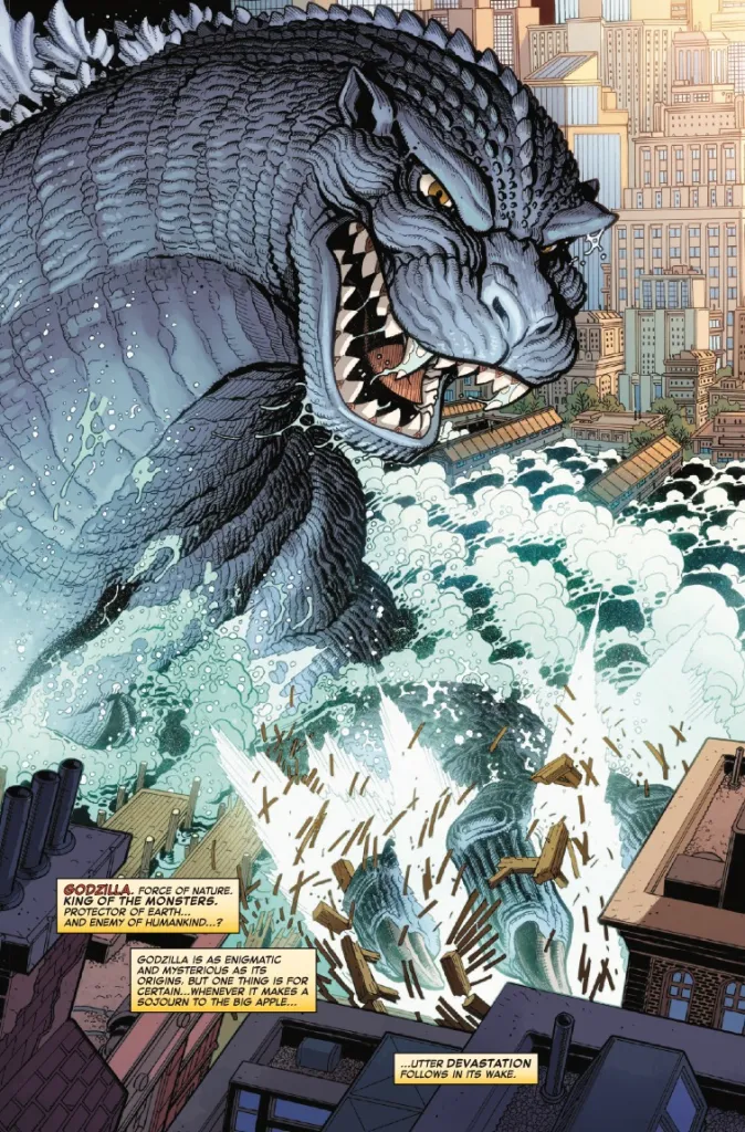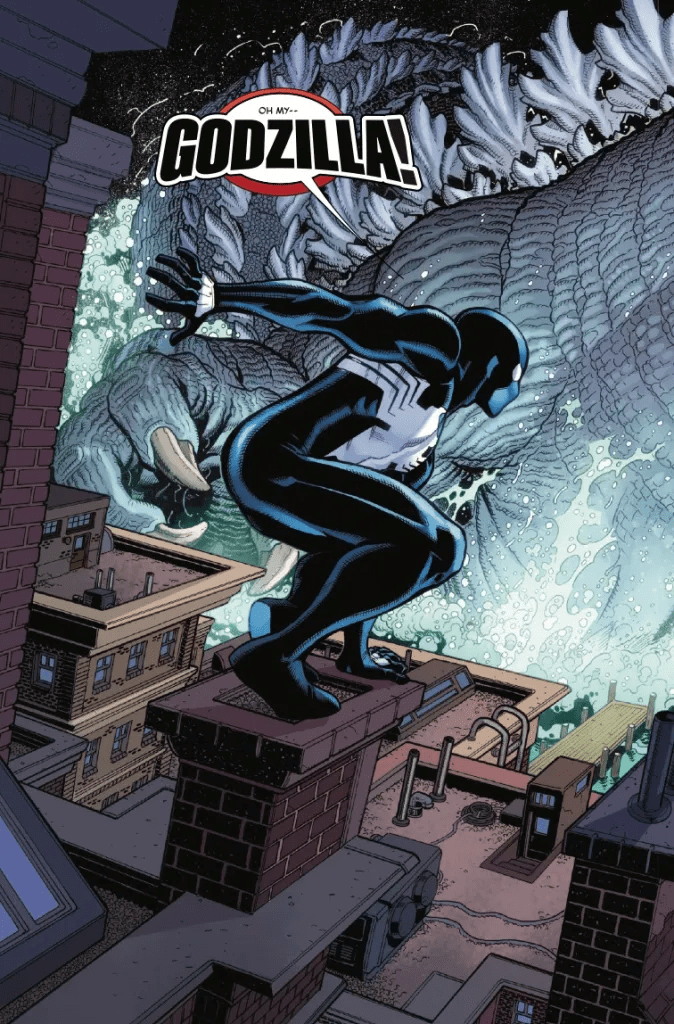 Godzilla vs Spider-Man es de largo el mejor comic de esta serie, siendo una sorpresa mayúscula que he disfrutado muchísimo. Empezando porque de todos los protagonistas de estos 6 especiales, ver a Spider-Man enfrentarse a Godzilla resultaba de largo la idea más ridícula. Si Spidey sufrió contra Juggernaut, ¿Qué puede hacer Peter contra un monstruo gigante del tamaño de un rascacielos? Esa era la principal aprensión que tenía a priori antes de leer este comic. Algo que Joe Kelly se cargó de un plumazo con un guion brillante y super divertido que me hizo sonreir de principio a fin, y que incluye algunos de los WTF? más bestias que leeré este año. Dicho esto en positivo.