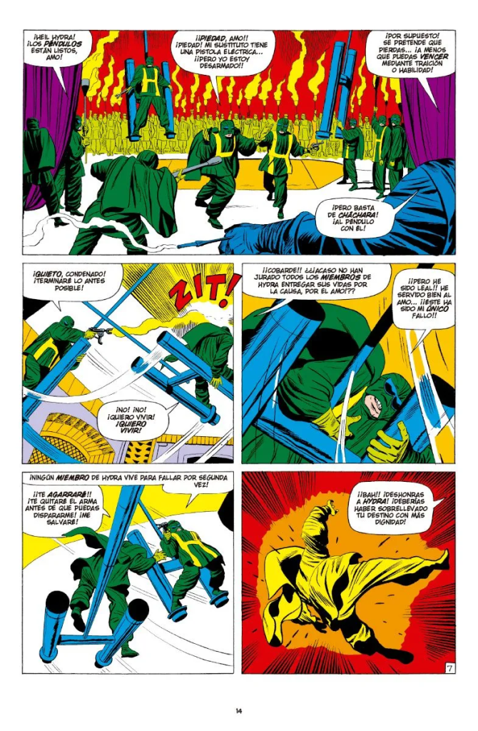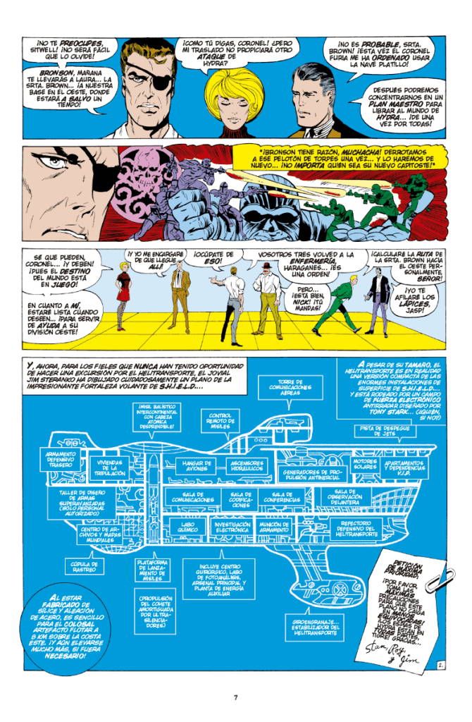 Steranko además plantea otro elemento que ya hemos visto en otras historias suyas, al intercalar en la historia principal una trama secundaria protagonizada por Pickman, un informante de Furia que busca ayudarle cuando descubre que está en problemas. Y como en otras ocasiones, esta trama acaba de forma abrupta y muy poco satisfactoria. Algo que en realidad podría también aplicarse al combate de Furia con un Escorpio que había suplantado a Furia para entrar en SHIELD y hacerse con todos sus secretos provocando al mismo tiempo su muerte. Un plan un poco ridículo porque podría haber matado a Furia antes de ir a SHIELD sin que nadie le descubriera.