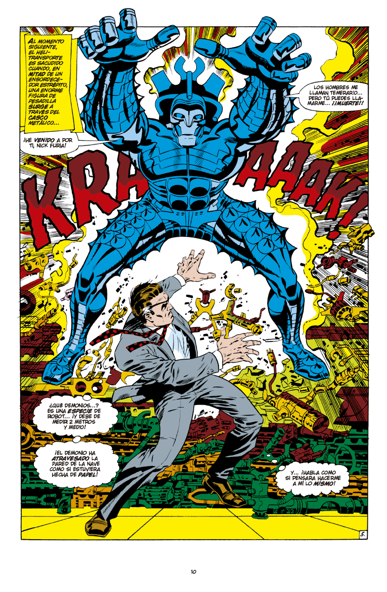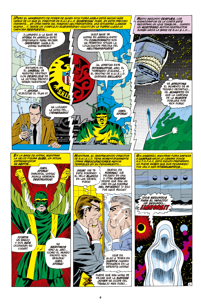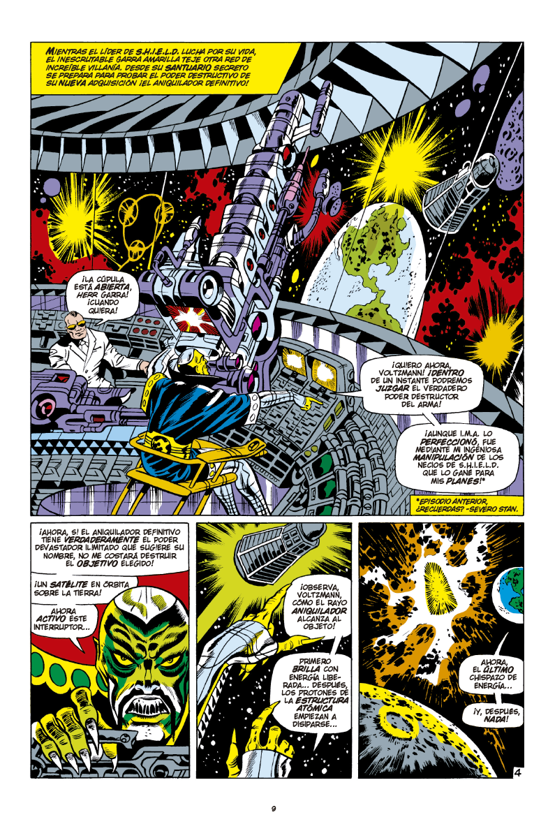 Es más que un cómic: es una máquina del tiempo. Descubre el origen de SHIELD y como encontraron a su líder, Nick Furia. En su despedida de la serie, Jim Steranko nos muestra qué ocurrió con Escorpio. La misión más arriesgada de Furia le conduce más allá de la Tierra. Además, el regreso de El Aborrecedor. Contiene los correos de lectores de la edición original y la cronología que lo sitúa todo en contexto. ¡Biblioteca Marvel, como siempre y mejor que nunca! ¡No puedes perderte esta edición histórica!