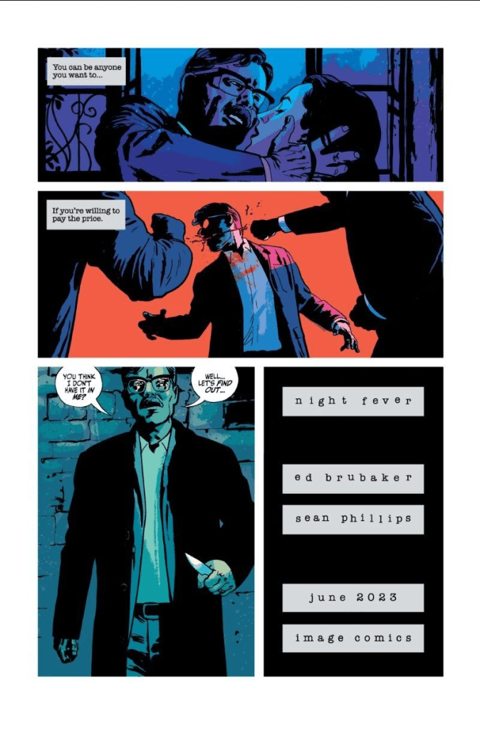 Tras publicar en 2 años 5 novelas gráficas de la serie Reckless, el dúo creativo formado por Ed Brubaker y Sean Phillips necesitaban un descanso. Fruto de esa necesidad de hacer cosas nuevas surge Night Fever, su nueva novela gráfica en Image Comics.