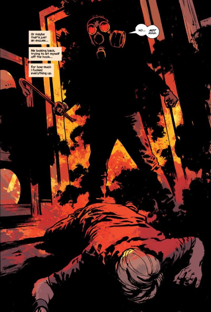 Otro detalle que me gusta de Follow me down es que se nota que Brubaker y Phillips buscan elementos que sean interesantes y aporten una capa adicional para Ethan pero a la vez ofrezcan cosas diferentes que creativamente les mantengan interesados. Si en The ghost in you, la cuarta novela gráfica de la serie, convertían a Anna, la amiga y ayudante de Ethan en protagonista, en esta obra vemos lo que provocó que Ethan estuviera fuera de Los Ángeles en ese momento. Las tres primeras obras de la serie Reckless (Reckless, Friend of the Devil y Destroy all monsters), eran totalmente autoconclusivas, y aunque The ghost in you y Follow me down pueden ser también leídas de forma autónoma siendo lecturas satisfactorias por ellas mismas, cuando las lees juntas forman una especia de duología en la que cada obra retroalimenta emocionalmente a la otra, consiguiendo un resultado aún más satisfactorio si cabe.