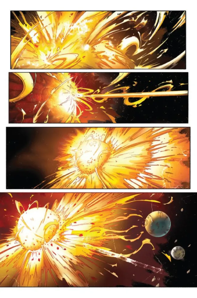 Dicho esto, aunque creo que este inicio es un buen comic, no está claro si la serie podrá aprovechar el potencial que se presenta en este número, especialmente cuando el cliffhanger de la última página plantea más dudas que emoción. (Pensando en la posibilidad de viajes temporales, que de confirmarse me darían una pereza terrible). Aparte, dentro de ser un buen arranque para una nueva colección, quizá el problema principal de este comic es un problema general en muchos comics Marvel actuales. LA ESCALA DE PODER. Porque tras ver a Phoenix absorber el excendente de luz y energía de un Sol que estaba a punto de explotar, ¿qué amenaza va a poder provocar la más mínima sensación de peligro para la protagonista? Y esto en realidad si es un problema, dentro que en positivo tengo que decir que quiero ver qué pasa a continuación. Objetivo cumplido.