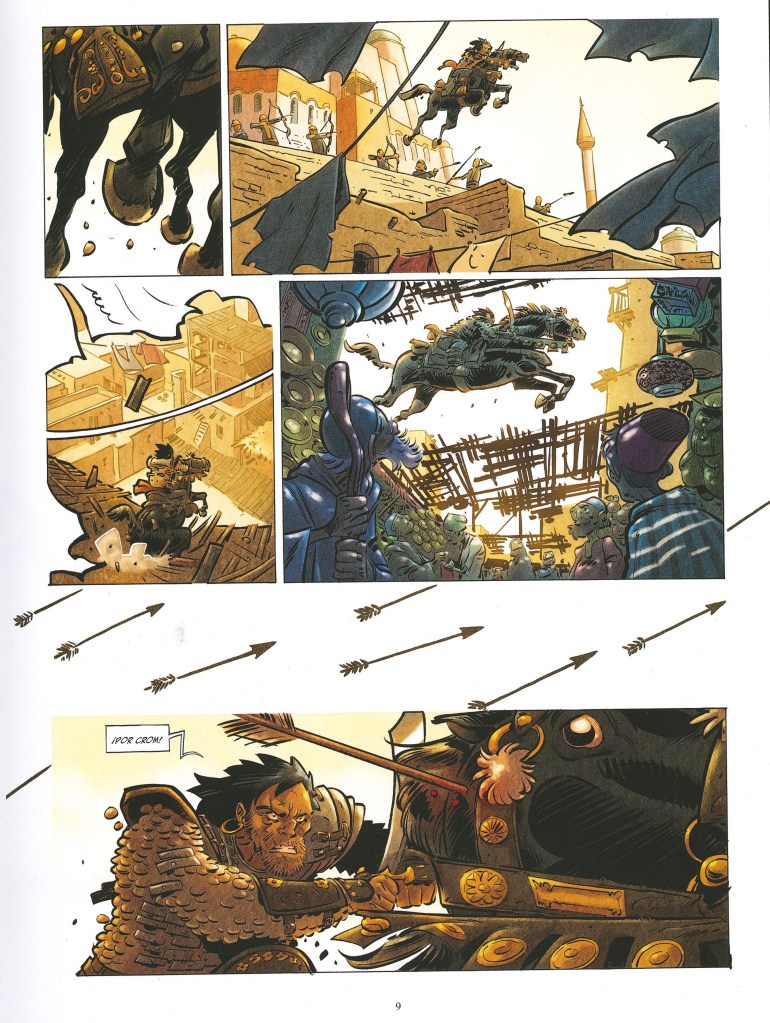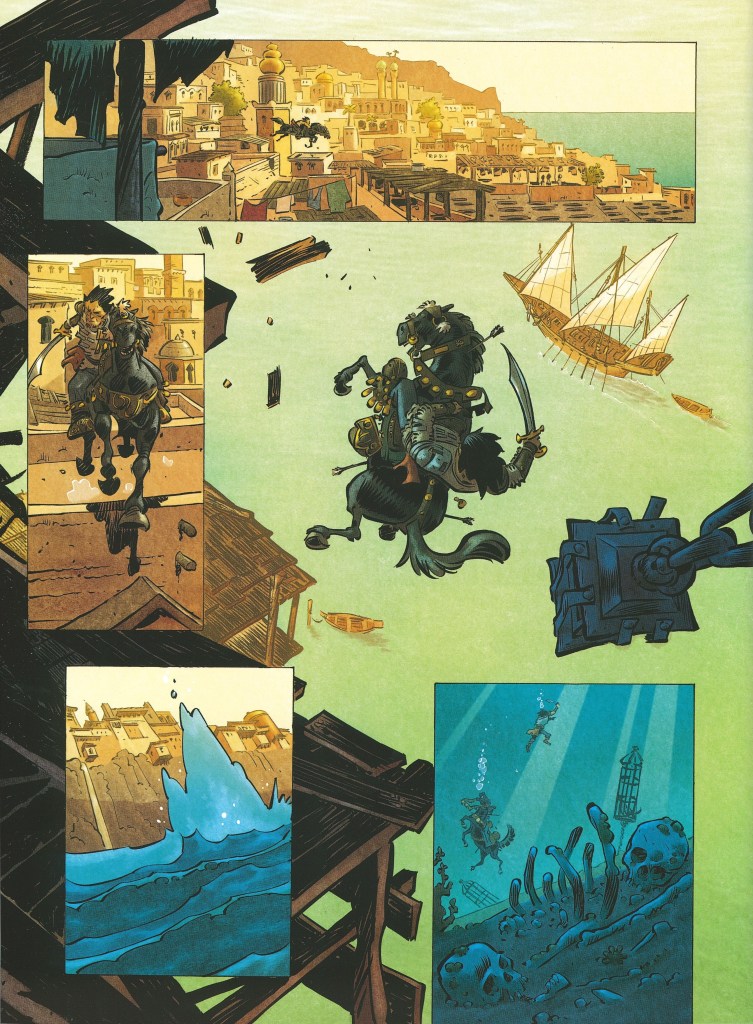 Esta versión de La hija del gigante helado me ha parecido fantástica. No conocía a Robin Recht (obviamente un tremendo fallo mío), pero es un autor increíble. El uso del color como elemento expresivo me ha volado la cabeza, desde el punto de vista únicamente visual este comic es un triunfo total, jugando no sólo con el color sino con la rotulación para enfatizar la brutalidad de varios de los combates, cosa que creo que queda muy bien. Además, Recht saca el máximo partido al formato de página más grande respecto al de los comics americanos, ofreciendo unas composiciones de páginas super potentes. El arranque del comic con varias dobles splash-pages me parece increíble, poniéndonos en lo más alto en un comic que no baja de nivel en ningún momento y cuyo climax me hizo levantarme del sillón para aplaudir entusiasmado.