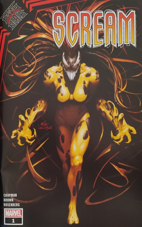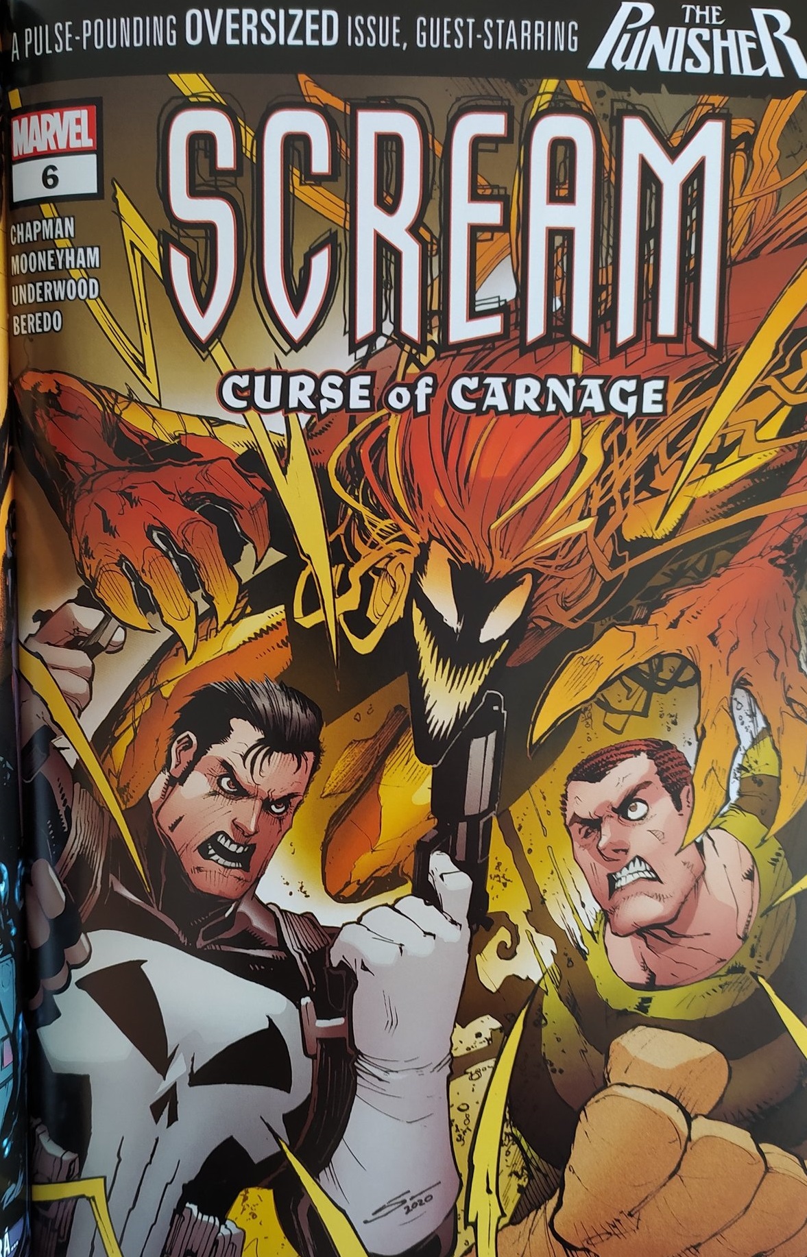 El pero de este comic no viene de la historia de Veneno, sino del tie-In de Grito incluido en esta grapa, obra de Clay McLeod Chapman en el guión, Garry Brown en el dibujo y Rachelle Rosenberg en el color, Un tie-in olvidable completamente que no aporta nada y que tiene un dibujo feísimo de Brown con el que no conecto para nada. Entiendo que en meses anteriores Panini ya había ido colando la miniserie de Grito en estas páginas y lo lógico era completar los comics de este personaje antes del próximo reinicio, pero en medio de toda la épica de este climax, este relleno me ha sabido super mal.