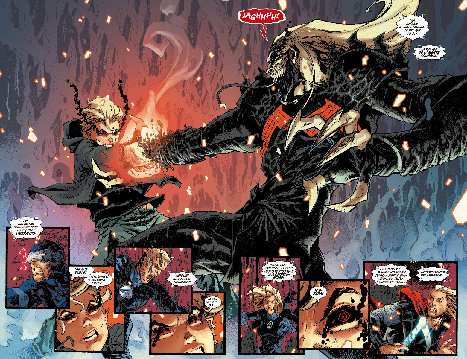 Me gusta mucho la planificación de Cates y cómo hace que cuarto número sea más coral, con unos momentazos protagonizados por Dylan Brock y una inesperada Jean Grey, para que a continuación el climax del número 5 sea 100% Eddie. La resolución de esta historia me ha gustado mucho y con ella, la forma en que Eddie Brock queda definitivamente establecido como uno de los grandes héroes del Universo Marvel.