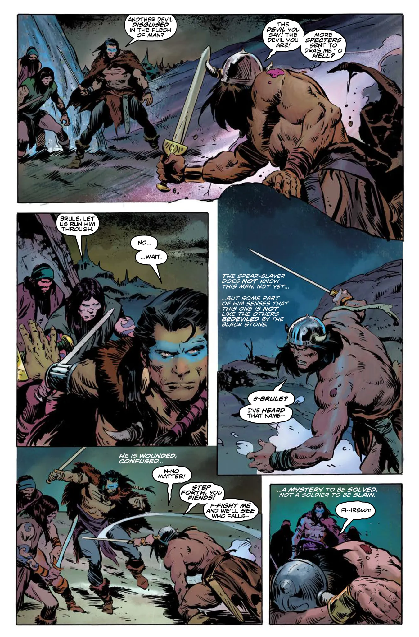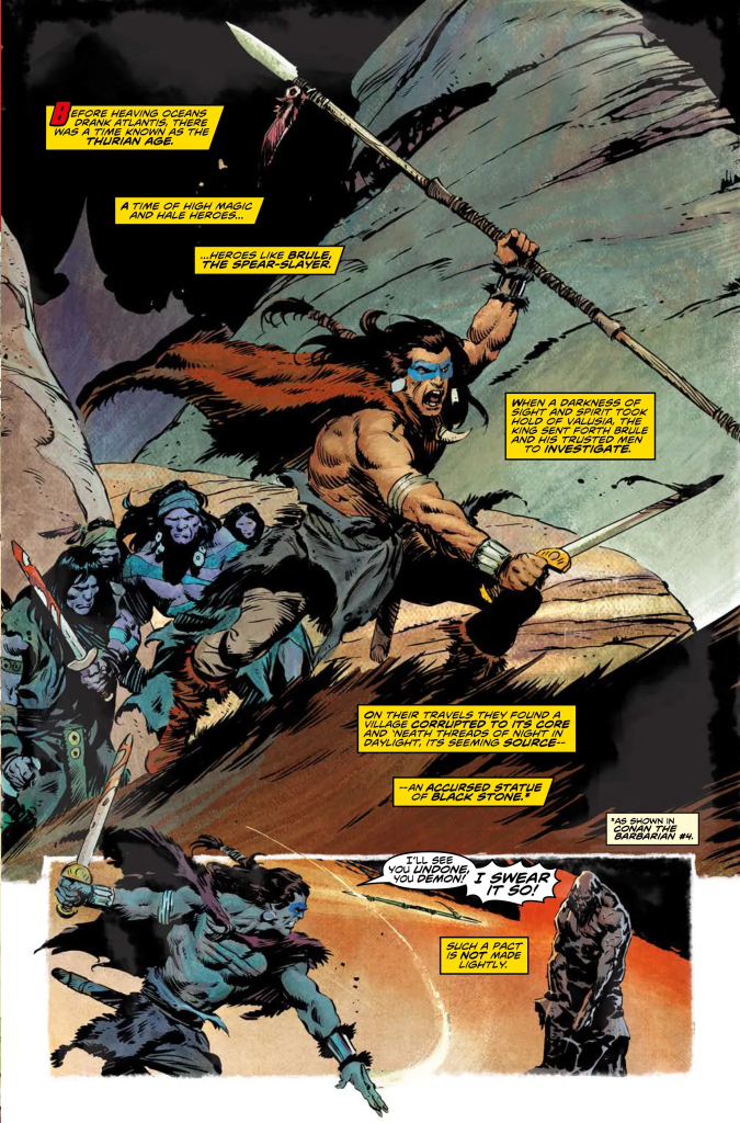 Spear y Fang son dos personajes poco conocidos de Robert E. Howard. La pareja que vivía en la prehistoria y su historia A prehistoric tale les enfrentará con seres serpiente que intentan suplantar a los miembros de su tribu. Aunque es una historia corta de 12 páginas, Jim Zub va al grano y el dibujo de Mike Rooth consigue que sintamos la brutalidad de este enfrentamiento, haciendo que esta historia sea super disfrutona. Aunque no sea Conan, Spear y Fang conectan completamente con el salvajismo que se espera de los personajes de Howard.