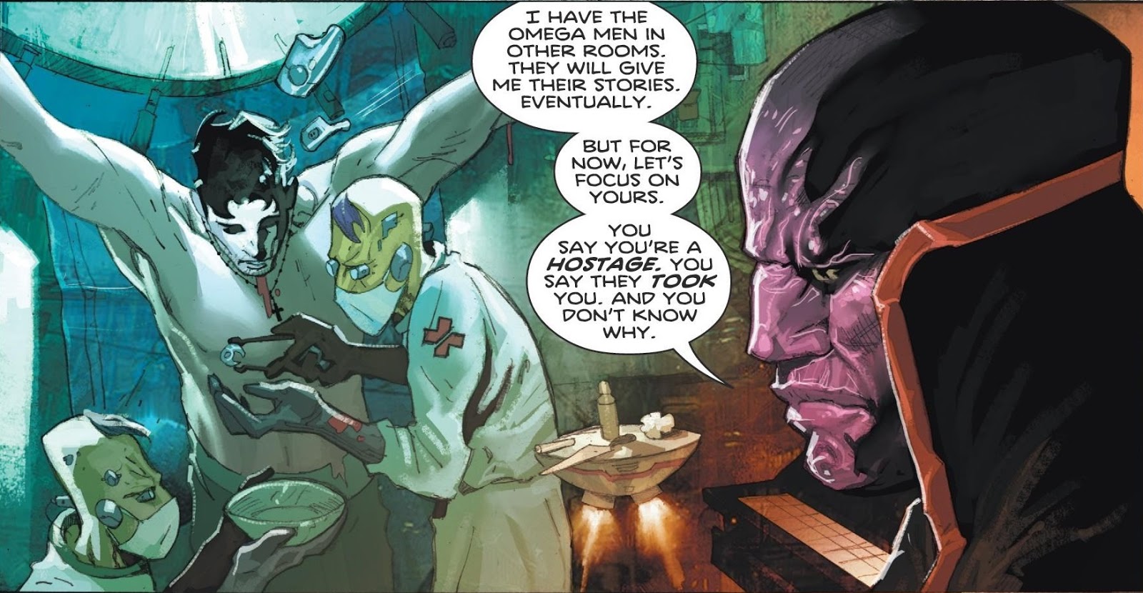 Además de la situación de vida o muerte provocada por Waller en la Tierra, me gusta también como Adams no se olvida del arco principal de la colección hasta ahora, la amenaza de Thaaros y su Alianza de Planetas que controla el espectro de colores. La forma en que Adams combina numerosas tramas a lo largo de estos números es algo que ya habiamos visto en los comics previos, y es algo que Adams controla como nadie. Creo que tener que plantear un tie-in de un evento tan importante como este Absolute Power y conseguir llevar la historia a su terreno y a lo que necesitan los personajes me parece una pasada. Y aparte de todo lo anterior, Adams introduce en estos números a Sorrow (Pena) un nuevo villano a partir de un nuevo sentimiento del espectro que tiene una cuenta pendiente con Carol Ferris y que apunta a que va a dar mucho juego.
