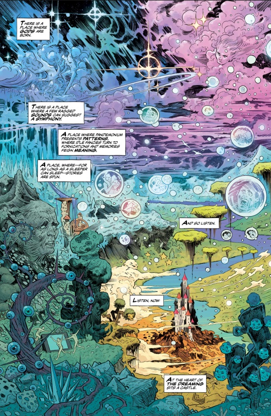 Sandman es la obra magna de Neil Gaiman, publicada por DC Comics a lo largo de 75 números entre 1989 y 1996. Junto a Gaiman, los artistas Sam Kieth y Mike Dringenberg aparecen acreditados como creadores, aunque por sus páginas pasaron artistas de la talla de Jill Thompson, Coreen Dollan, Kelley Jones, Charles Vess, Michael Zulli, Marc Hemper y muchos más. Aparte de narrar la historia de Morfeo, el Señor del Sueño, y como el cambio es inevitable lo quiera él o no, el comic sirvió para que Gaiman explorar sus inquietudes como contador de historias, planteando numerosas historias fuera de la trama principal con personajes como William Shakespeare, analizando la propia naturaleza de las historias. Tras cerrar la historia, Gaiman ha vuelto cada pocos años para contar nuevas historias en este mundo, como Obertura junto al increíble J.H. Williams III.