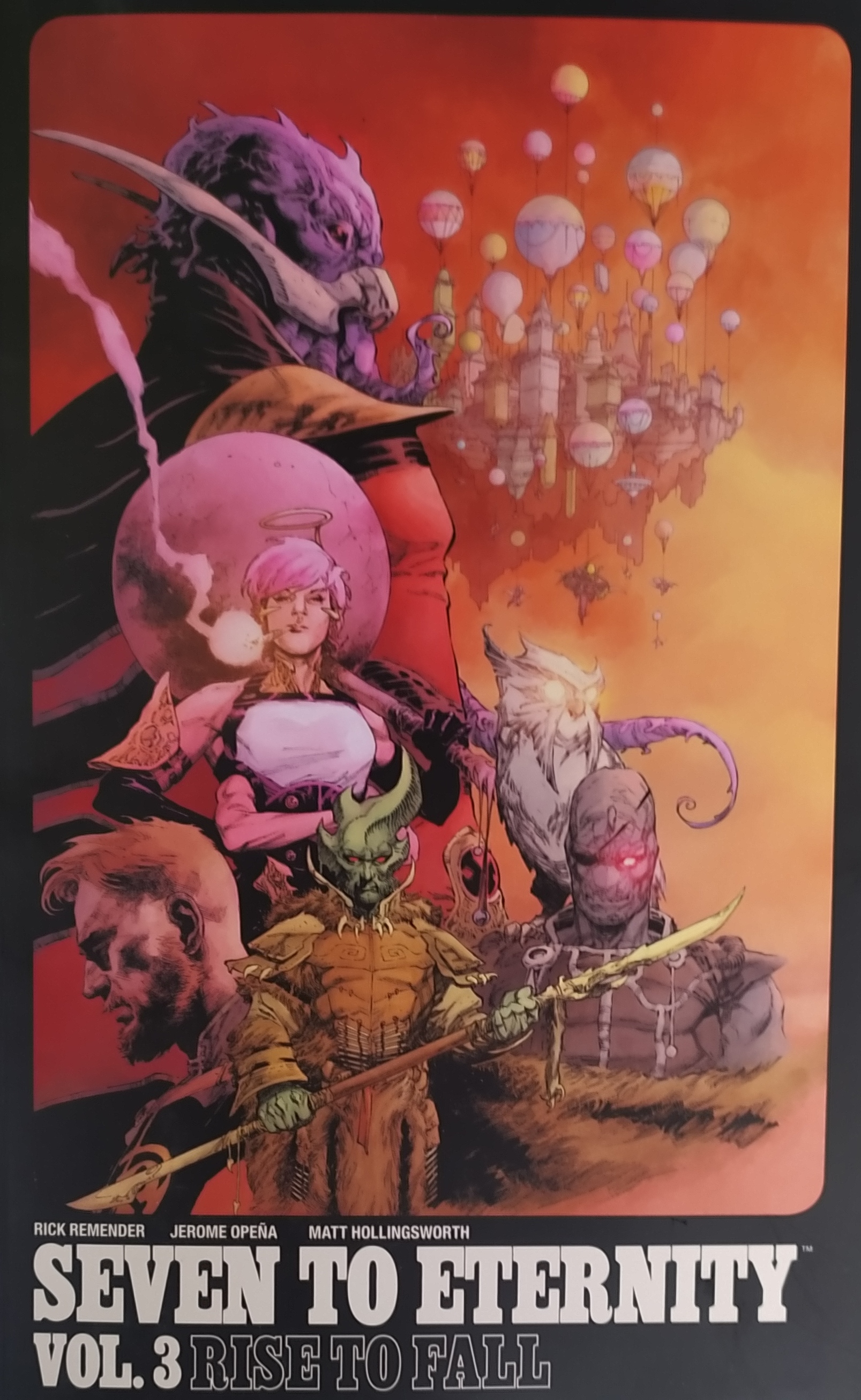 Termina un largo viaje de 5 años, desde que en septiembre de 2016 Rick Remender y Jerome Opeña empezaron a publicar Seven to Eternity en el sello Image. 5 años y tan sólo 17 números. Aquí puedes leer mis reseñas de los volúmenes uno, dos y tres , en las que iba explicando cómo con cada nueva lectura la historia de Rick Remender me encajaba cada vez menos y le decepción iba aumentando.