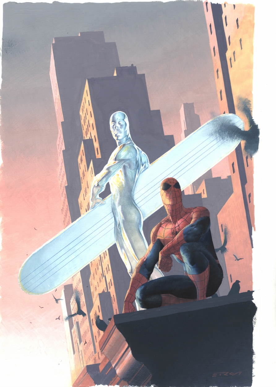 Silver Surfer tiene la ventaja a la hora de ser valorado que cuenta una historia con principio y final, lo que unido a la unidad artística conseguida por un Mike Allred imperial consigue que este comic sin duda tenga una mayor cualidad «autoral» que Spiderman, serie en la que sufrimos continuos cambios de dibujantes. Pero creo que sinceramente es mucho más fácil para mi crear un comic que vaya a su aire como ha sido este «Estela Plateada», ojo, sin quitarle el mérito que tiene este comic, que tener que crear un comic de Spiderman que no solo enganche su historia sino que deba mencionar arcos argumentales que sucedan en otras series, como el crossover de Imperio Secreto, por nombrar uno.
