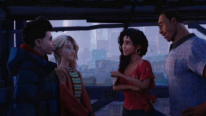 Otro punto a favor de la película son los padres de Miles, Rio y Jeff. Si Gwen y Miles van a enamorar a los niños y mayores, los padres de Miles representan el miedo que todos los padres tenemos ante el paso del tiempo y comprobar que nuestros hijos se hacen mayores y llegará un día que no nos van a necesitar. Su amor incondicional consiguió emocionarme y hace que entiendas que Miles hará cualquier cosa por ellos. Volviendo a la parte de lo bien escrita que está la película, me encanta ver cómo la película da elementos a niños y mayores para que quedemos rendidos ante ella.