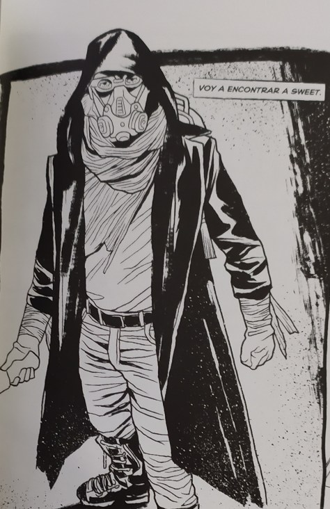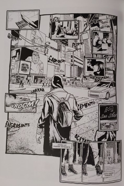 El «homenaje» a Frank Miller y David Mazzucchelli es el más evidente, pero mientras leía el comic hubieron montones de viñetas que me sugerían imágenes de otros comics de toda la vida. Lista de imágenes demasiado larga como para detallarla en este reseña. Y esto es un error garrafal, porque lo que me transmitía no era colegueo, sino leer un comic con unos autores que habían optado por la solución fácil cuando a lo mejor había una opción más complicada pero a la larga mejor, que implicaría crear de cero sus propias imágenes icónicas. Y esto también es lo peor que creo que puede pasar cuando estas leyendo un comic con pretensiones de importancia dentro de la escena española. Porque en muchos momentos en lugar de disfrutar del comic me tenían pensando qué viñeta de qué autor había «inspirado» cada escena de este comic. Y de nuevo quiero pensar que la enfermedad de Vidal provocó que se tomaran estos atajos para intentar que el comic se publicara cuanto antes. Pero sea por el motivo que sea, el resultado no es satisfactorio.