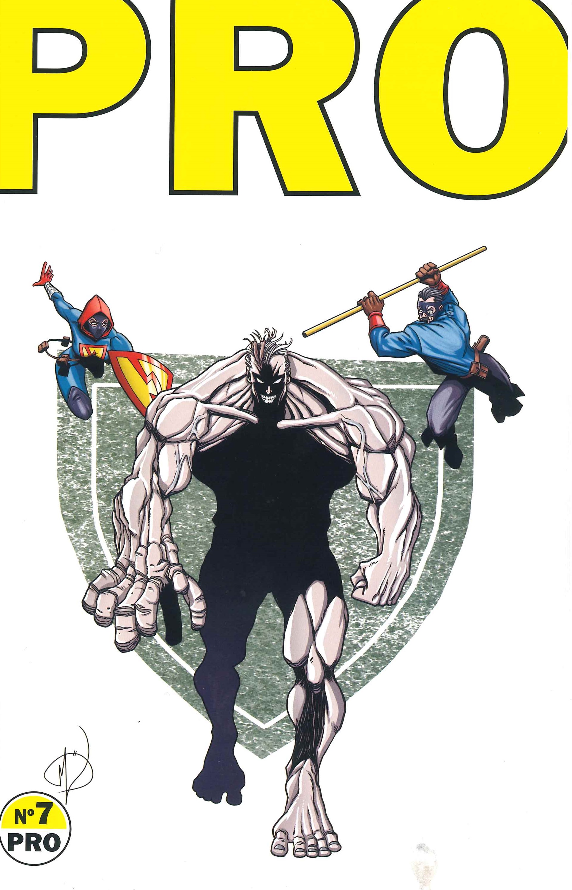 Y si el caso es que Pro «es un homenaje a Moore porque es mi escritor favorito» no creo que funcione cuando estas copiando toda la estructura de Watchmen pero sin la complejidad. Empezando por la rejilla de 9 viñetas, con herramientas de voz en off y varias narraciones superpuestas. Además del propio texto de prosa al final de cada capítulo, que da más información del mundo de Pro. Justo como Watchmen. Hay que decir que esto es sobre todo evidente en el primer número de siete que tiene Pro, quedando diluido en los siguientes números. Pero globalmente, más que osado, Galán me ha parecido un kamikaze.