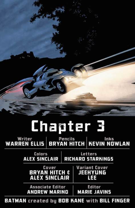 Ellis ha planteado una historia basada en resaltar la faceta de detective de Batman que en los últimos años había quedado un poco aparcada, además de dar rienda suelta a Brian Hitch para que se luzca en sensacionales escenas de acción. Reconozco que solo por esto ya está más que justificado pagar el precio de portada de este comic.