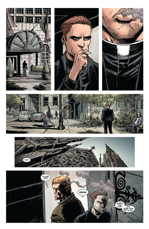 He leído una entrevista con Capullo y no se muestra demasiado satisfecho con el resultado final del comic. De alguna manera se intuye que McFarlane estuvo meses negociando con DC el crossover, y cuando le dieron el OK, el plazo de entrega del trabajo fue muy corto para un comic de 48 páginas como éste. Y el caso es que leí esta entrevista después de leer el comic, y en el momento de la primera lectura la sensación que me dejó era que era un buen comic muy bien dibujado, pero también que NO es uno de los mejores trabajos de Capullo. Y por supuesto Capullo es un seguro de vida y sus splash-pages son super espectaculares, además que nadie como él para recrear callejones lúgubres. Pero también hay algunas figuras mostradas de la forma más básica posible, con una planificación de página que está bien, pero sin pasadas narrativas.