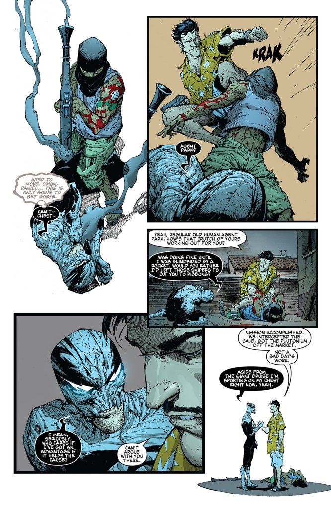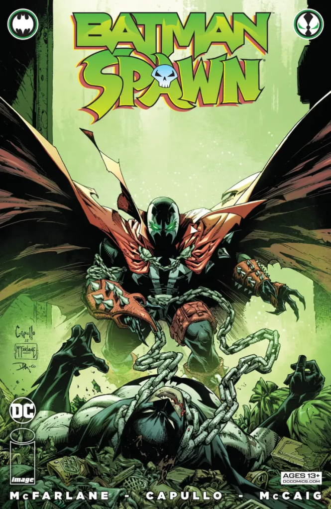 McFarlane se encarga del guion y de ponerle tintas a Capullo, además de contar con Dave McCaig en el color, comentando que ha sido un trabajo super gratificante para él al recuperar su colaboración con Capullo, que se interrumpió hace más de 10 años cuando Capullo dio el salto a DC. La historia no inventa ninguna rueda, solucionando de forma correcta los aspectos fundamentales que necesita la historia, empezando por la forma de conectar los mundos de ambos personajes, la elección del villano y cómo disminuir el nivel de poder de Spawn para que su pelea con Batman esté competida. En lo demás, tenemos la típica estructura de personajes que se enfrentan por una confusión provocada por el villano, hasta que se dan cuenta que tienen que unir sus habilidades para derrotarle, todo ello decorado con las características dosis de macarrismo de McFarlane.
