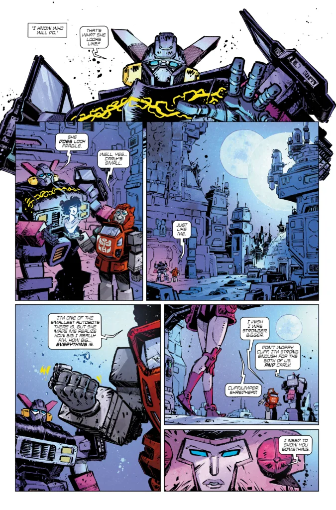 Además, dentro de la narrativa con múltiples protagonistas, me gusta que el comic tenga tiempo para mostrarnos qué están haciendo Carly y Spike en Chicago, ayudando a la reconstrucción, o Elita-1 y Cliffjumper en Cybertron.