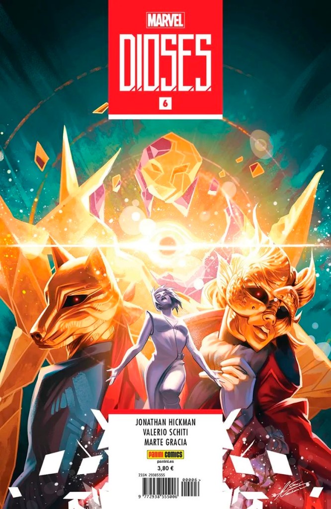 Sexto número de D.I.O.S.E.S. de Jonathan Hickman y Valerio Schiti, con colores de Marte Gracia, protagonizado por Aiko Mako, Centivar del Orden Natural de Todo y antigua mujer de Wyn.