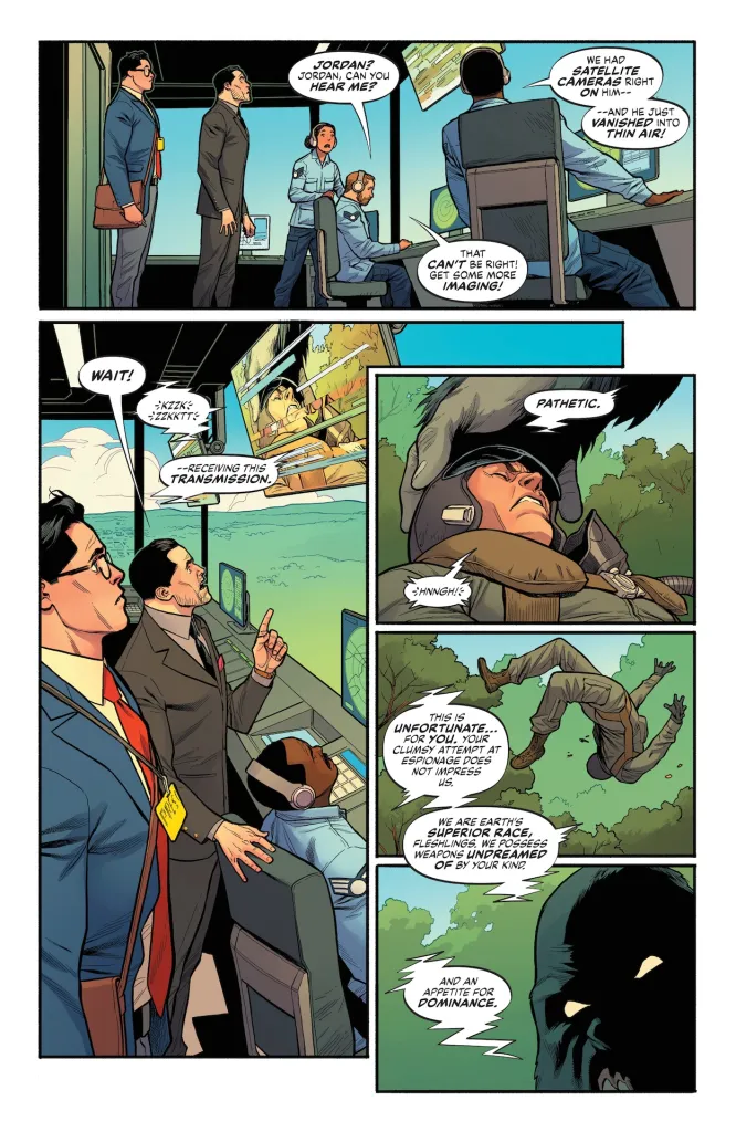 Gutiérrez parece que ha debido congeniar de maravilla con Mark Waid, porque sus imágenes de acción están bien, pero lo mejor de su dibujo es el sentido del humor que tiene todo. Por ejemplo, el diseño del Bizarro-Lex Luthor como un tío super majo me hizo mucha mucha gracia. Pero junto a eso, en las primeras páginas del arco, que puedes ver a continuación, Gutiérrez se las apaña para plantear un tono terrorífico que funciona de maravilla.